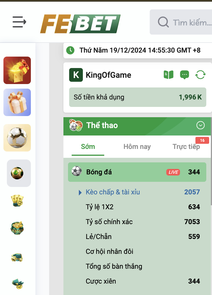 Đặc biệt, giao diện thân thiện của Febet giúp việc đặt cược trở nên cực kỳ đơn giản.